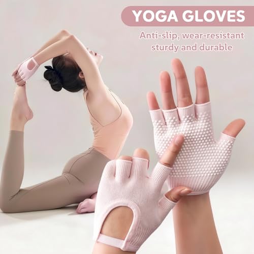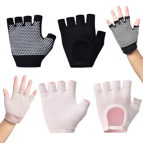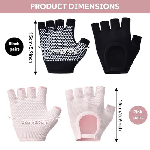 2 Paires Gants Yoga Femmes Fitness, Gants de Fitness Antidérapants Respirants Fingerless Mitaine Sport Absorption Confortable Yoga Gloves sans Doigts, pour Pilates Danse Culturisme Unisex