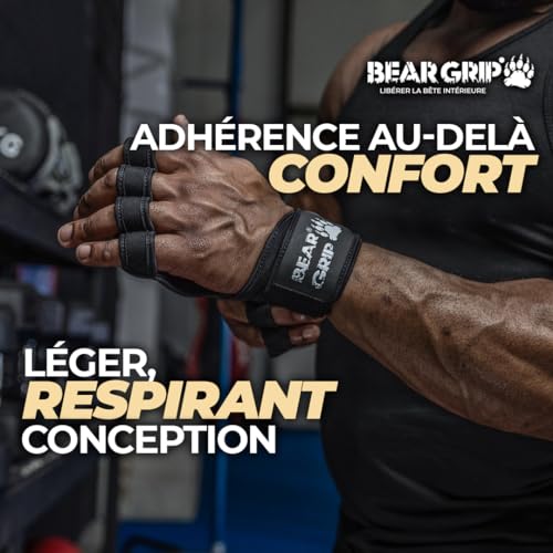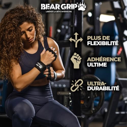 BEAR GRIP Gants d’entraînement Ouverts pour Crossfit, Musculation et haltérophilie, Gants de Gym rembourrés pour Hommes et Femmes – Accessoires de Fitness, Sport et haltérophilie