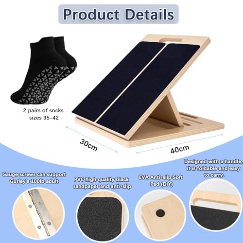 2025 Nouveau Avec Poignée Portable Balance Board,Plaque D’inclinaison Antidérapante Réglable (5 Angles),Étireur mollets Livré Avec 2 Paires Chaussettes Antidérapantes En Coton