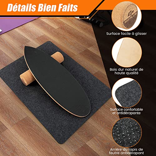 COSTWAY Planche d’Équilibre en Bois avec Rouleau et Tapis Antidérapant Charge 227 KG, Balance Board pour Entraînement de Skateboard Hockey Snowboard Surf