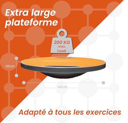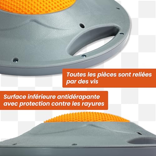 Qualité fiable : le haut et le bas de la planche d’équilibre sont fabriqués en TPE élastique de haute qualité et offrent un maintien stable pendant l’entraînement. La construction robuste en pièces vissées dispose d’une charge maximale de 200 kg. Il suffit d’utiliser un chiffon humide pour le nettoyage.
