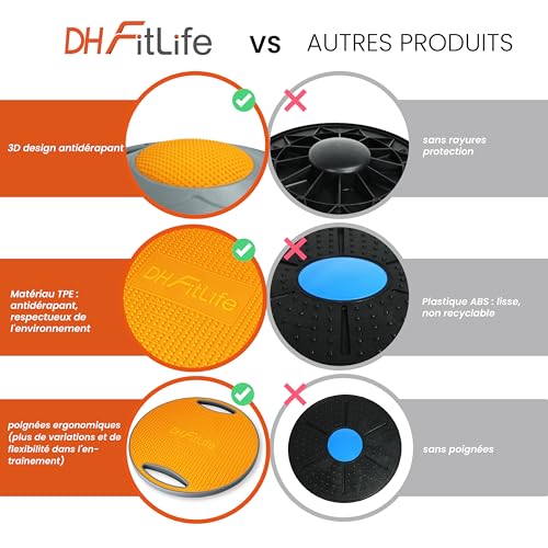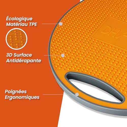 DH FitLife Planche d’équilibre, Balance Board avec Poignées, Extra Large Ø 42 cm, Max. 200 kg, Entraîneur d’équilibre, Planche d’équilibre Fitness Adultes et Enfants