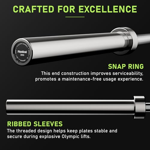 ✅CONÇUE POUR L’EXCELLENCE – Fabriquée en acier No. 45 solide laminé à froid, cette barre olympique peut supporter en toute sécurité jusqu’à 500 livres, dépassant les besoins de la plupart des haltérophiles. Le capuchon d’extrémité fixé avec une bague à ressort améliore la praticité et la longévité globale de la barre.