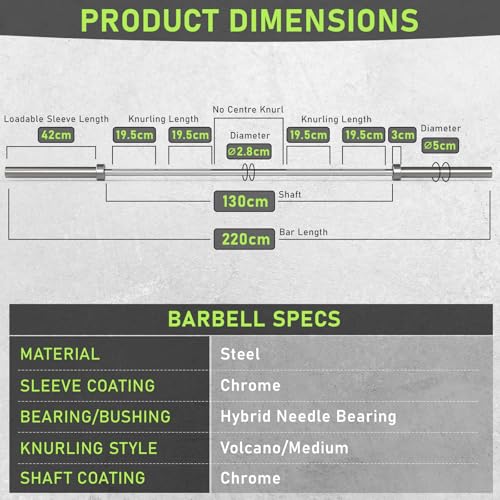 ✅BARRE DE MUSCULATION POLYVALENTE – Mesurant 6,6 pieds/2,01 m de long avec un diamètre de tige de 25 mm et pesant 33 livres/15 kg, cette barre respecte les spécifications standard de l’haltérophilie olympique, la rendant adaptée à une large gamme de routines d’entraînement – du squat, du hip-thruster et du soulevé de terre, aux épaulés-jetés et tout ce qu’il y a entre les deux, vous permettant d’aborder votre programme complet d’entraînement en force avec une seule barre haute performance.