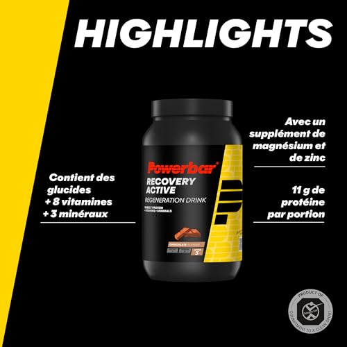 Powerbar – Recovery Active Chocolate 1210g – Boisson de régénération à base de lactosérum avec glucides – Magnésium – Zinc