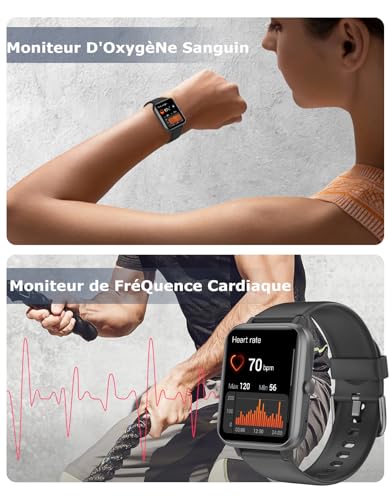 🌈 Compatible et Etanche à 5 ATM : Cette montre connectée Bluetooth est compatible avec Android 4.4 / iOS 8.1 ou supérieur. Résistant à l’eau jusqu’à 5 m, vous pouvez porter la montre de fitness lorsque vous nagez, vous baignez et vous lavez les mains sans souci.