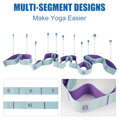 Sangle de Yoga Avec 11 Anneaux – Bande Élastique d’Étirement pour Exercices, Ceinture de Yoga pour Étirements
